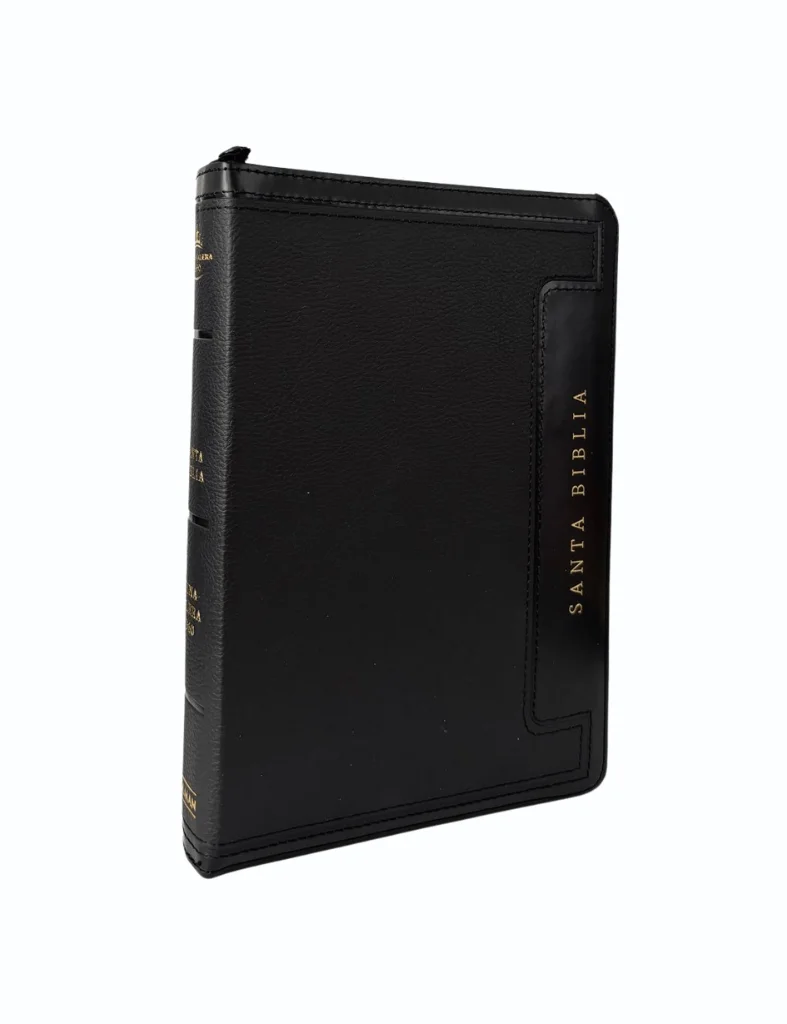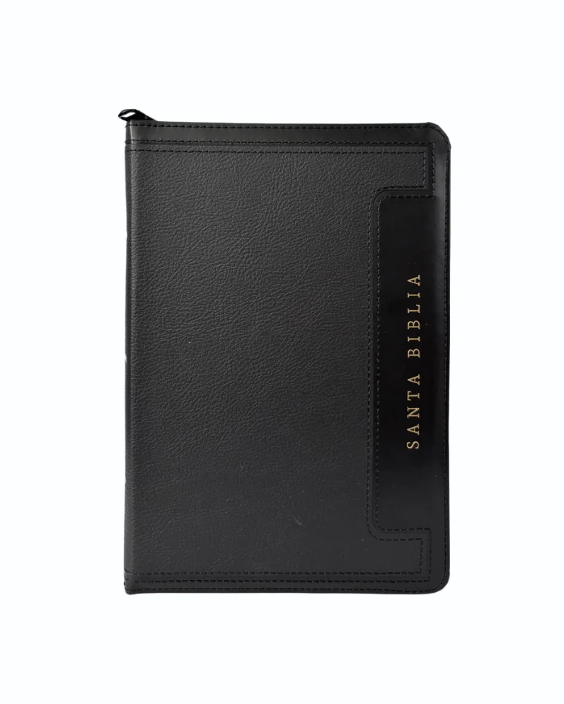 Biblia tamaño manual letra grande con indice y cierre – Negro Símil Piel