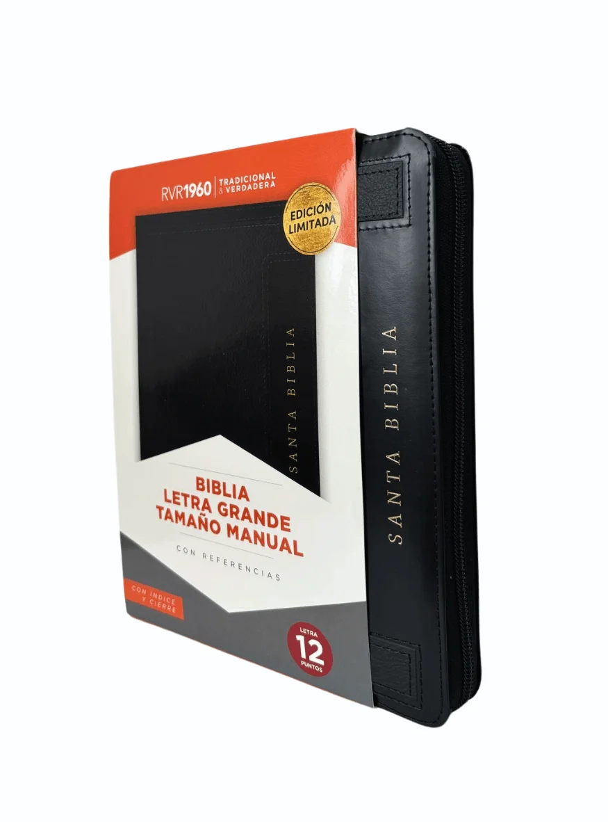 Biblia Tamaño Manual Letra Grande con Índice y Cierre – Negro Símil Piel